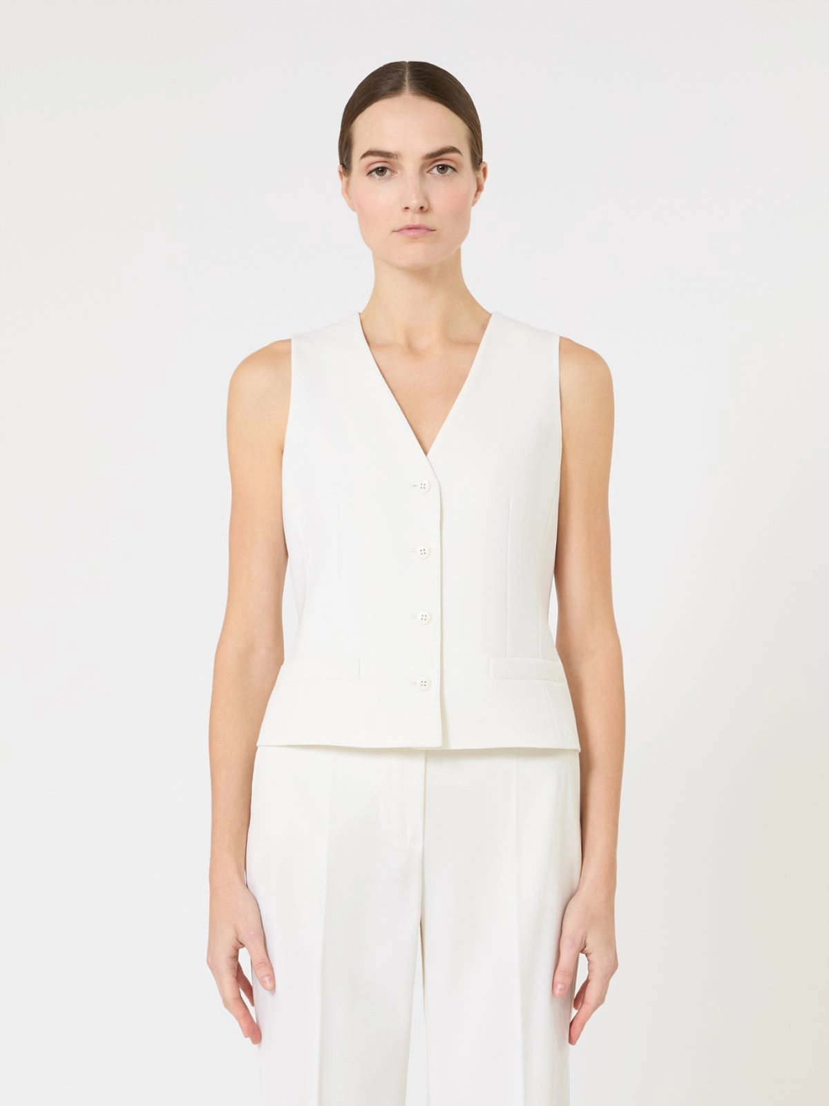 Vest with a feminine silhouette, slightly fitted at the waist and with a small central slit on the back.